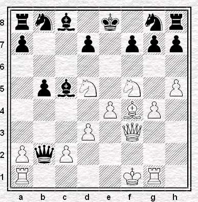 Il Bianco ha due Pedoni in meno e deve quindi attaccare prontamente. La partita è continuata così: