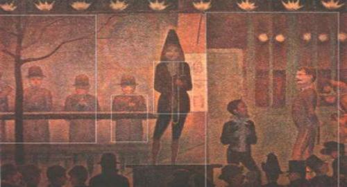 Nell’opera dal titolo “La parade du cirque” il pittore divisionista francese Georges Seurat impiega varie sezioni aureealcune delle quali sono evidenziate nella figura.