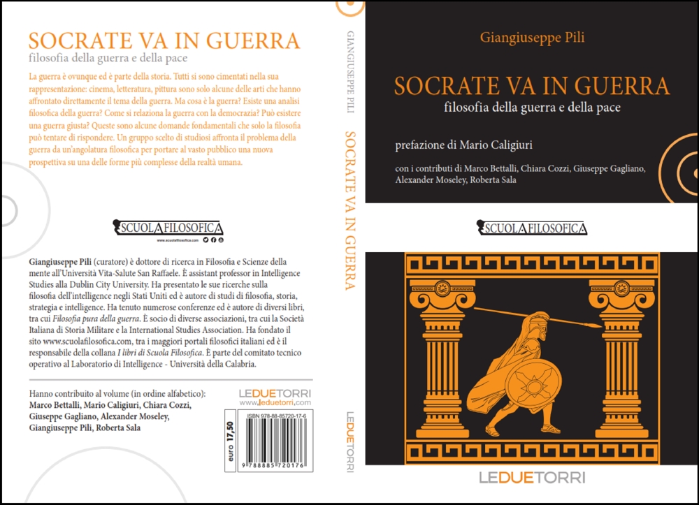 E con questo siamo a sei! Dopo La guerra fredda (Pili & Carrus (eds), agosto 2018), Il buon medico è anche filosofo? (Cosio (ed), novembre 2018), Scrivere di filosofia (Cozzi (ed), dicembre 2018) Il bambino di Platone (Margoni (ed), novembre 2018), Cose o persone? (Cosio, gennaio 2019) è con nostro immenso piacere di annunciare il sesto volume della collana di libri di Scuola Filosofica, Socrate va in guerra – Filosofia della guerra e della pace! Questo volume è stato curato dal fondatore di SF, Giangiuseppe Pili e ha l’illustre prefazione del prof. Mario Caligiuri e una selezione di saggi che trattano del delicato tema della guerra da un punto di vista filosofico e con il contributo di Alexander Moseley, scholar internazionale e autore del libro A philosophy of war. Gli altri autori sono: Marco Bettalli, Roberta Sala, Chiara Cozzi, Giuseppe Gagliano. Vi invitiamo dunque alla buona lettura e a sfogliare la pagina per scoprire cosa c’è dentro! Se desiderate comprarlo, potete andare alla pagina dell’editore Le Due Torri!