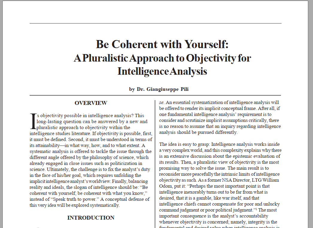 Since I started this blog, its motto was “All we need is philosophy… which is love for knowledge”. Naturally, it was a paraphrasis of Beatle’s song “All we need is love”, an over abused mantra. The irony is that the paraphrasis is almost untouched as philosophy was classically defined by Plato as love for knowledge (or wisdom, or whatever it increases human understanding): “all we need is love for knowledge” is what I would have sung if only I was a good songwriter. “All we need is love for knowledge” seems to be a far better and more universal creed, so much so that so great music composers such as the Beatles did not miss it. As it was said in a private conversation by one of the two editors of the esteemed Intelligence and National Security, this special issue was an act of love toward philosophy. As strange it may sound, as unlikely it could be in hour days, when everything is reduced to brutish emotions and useless sarcasm and cynicism, this is the truth.